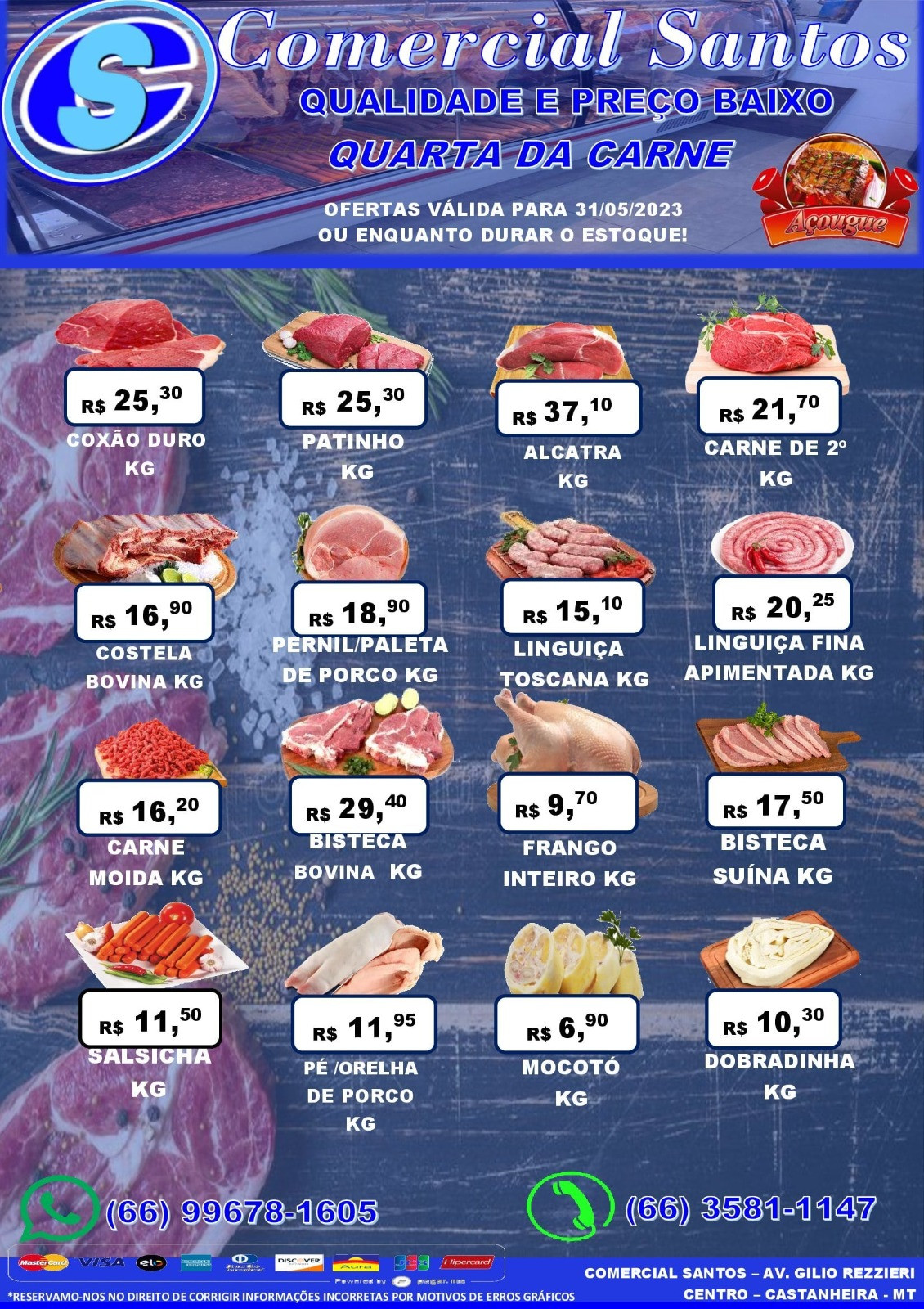 Toda quarta, você já sabe, é dia de comprar carne no Comercial Santos com preços mais baratos. Nos sábados, a estratégia se repete.